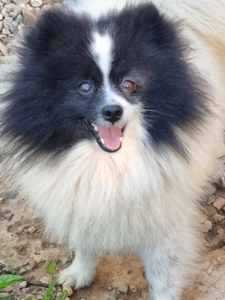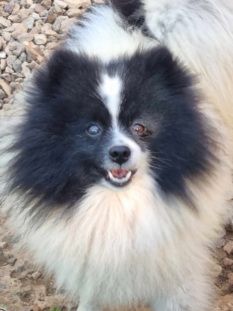 Spitz nain noir panaché blanc.